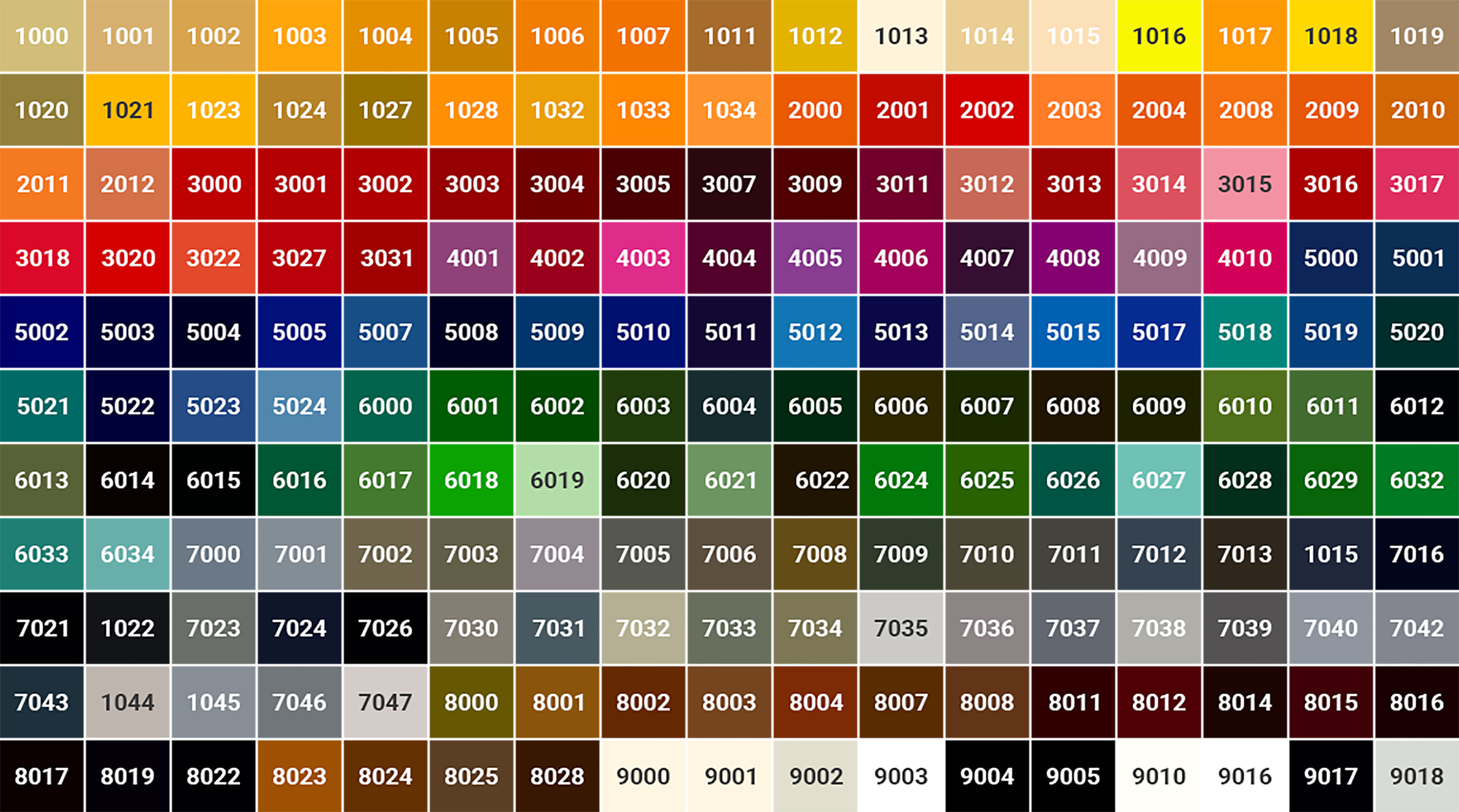 МетВэл предлагает широкий выбор цвета покрытий металла, что позволит вам создать уникальный дизайн своего изделия. В нашем арсенале более 1000 цветов по палитре РАЛ, а также все стандартные цвета.